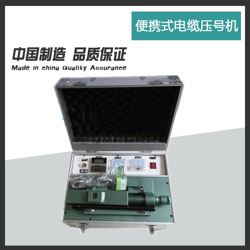 三、便攜式電纜壓號(hào)機(jī)使用說(shuō)明1、打開(kāi)保護(hù)箱體,扶正支臂,安裝壓線(xiàn)器,調(diào)整所需要編號(hào)、平方、長(zhǎng)度數(shù)字碼,根據(jù)電纜截面積調(diào)整電纜滑塊;2、將電纜放入擰緊支臂,接通電源,打開(kāi)開(kāi)關(guān),調(diào)整到需要的溫度(130℃左右);壓號(hào)后,溫度降至60-40℃時(shí),方可取出電纜。四、主要技術(shù)參數(shù)外形尺寸:330x230x220電壓:220V功率:2KW重量:15KG