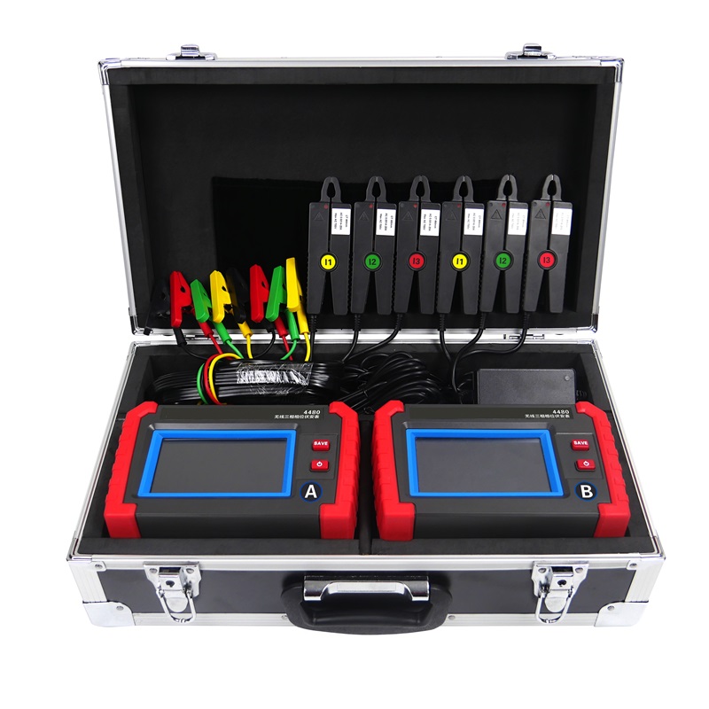 SDSX-4480無線三相相位伏安表,用于變電站內(nèi)不同位置的三相電力參數(shù)測量、PT無線核相、PT負(fù)荷測試、CT負(fù)荷測試、三相不平衡度測試、諧波分析等。儀表由2臺手持終端、6個電流鉗、2組電壓測試線等組成,2臺手持終端具有無線通訊及GPS通訊,可互設(shè)為主機或從機,實現(xiàn)同步測量變電站內(nèi)不同位置之間電流、電壓、相位等參數(shù)。