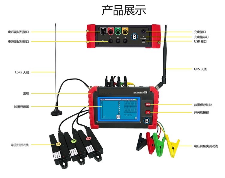 SDSX-4480無線三相相位伏安表采用5寸觸摸彩屏、中文界面、功能直達、自動測量、操作簡易快捷,準(zhǔn)確可靠,儀表采用大容量可充電鋰電池、具有數(shù)據(jù)存儲、數(shù)據(jù)查閱、自動關(guān)機、USB接口數(shù)據(jù)上傳導(dǎo)出等功能。儀表具有支持安卓系統(tǒng)的藍牙通訊,可在手機進行測試或查看測試記錄。本儀器采用專用計量芯片,具備非常稿的電參數(shù)測量精度,能夠?qū)崟r顯示待測參數(shù)的變化,同時具備一鍵保存數(shù)據(jù)的功能。產(chǎn)品操作簡單、使用方便、測量快速、穩(wěn)定、結(jié)果可靠,是電力系統(tǒng)電能計量和繼電保護專業(yè),進行二次回路現(xiàn)場檢測的新一代儀表,也適用于電氣設(shè)備制造、石油化工、鋼鐵冶金、鐵路電氣化、科研教學(xué)等部門。